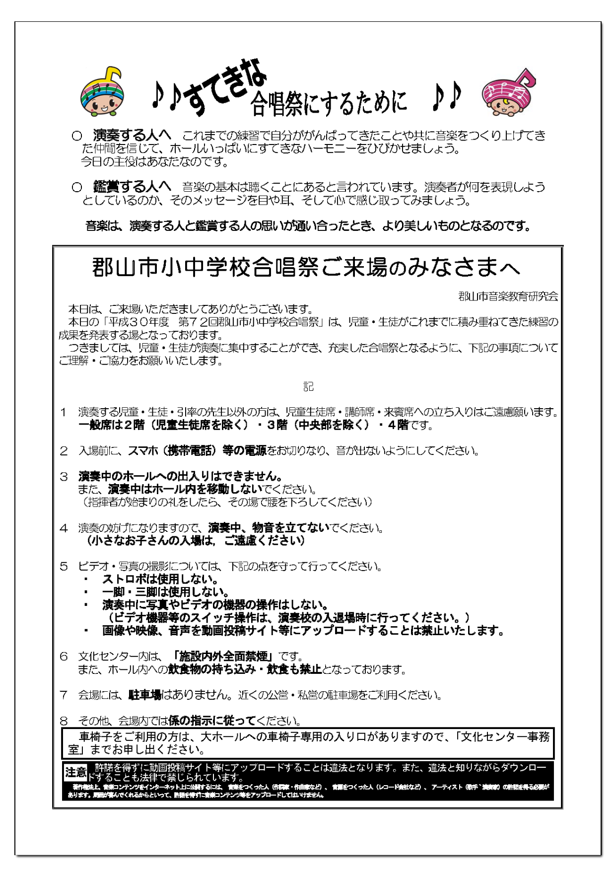 各賞及び福島県下小中学校音楽祭(第Ⅰ部合唱)推薦校